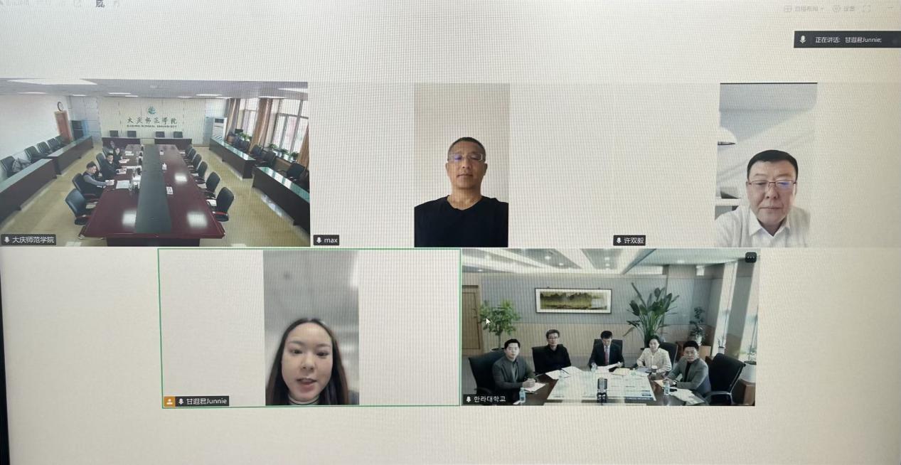 为稳步推进中外合作办学机构申报工作,深化校际教育交流合作,2月3日,我校与韩国汉拿大学举行线上洽谈会。会议由副校长许双毅主持,韩国汉拿大学校长金应权、全球副校长金钟夏及相关工作人员参会;我校校长张平、对外合作与交流处处长王忠民及相关工作人员参会。